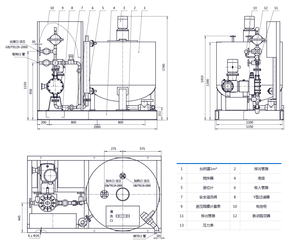 裝置具有結(jié)構(gòu)緊湊,體積小,耐腐蝕,耗能低,操作維護(hù)方便。有儲存藥劑,混合和外輸?shù)墓δ堋?/span>