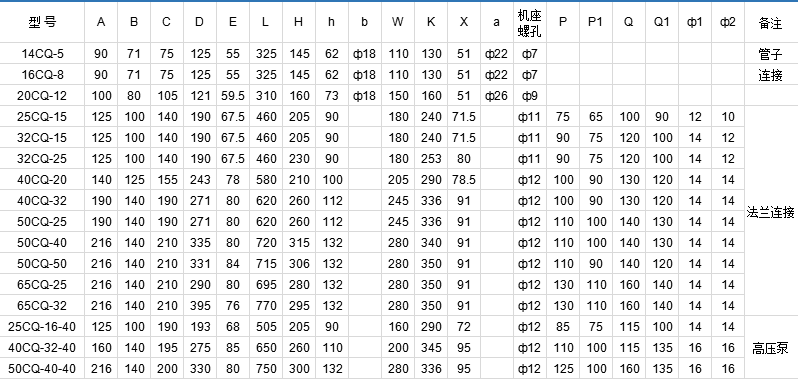 CQ型高壓磁力泵性能參數(shù)