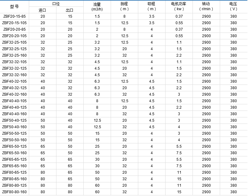 ZBF型自吸式塑料磁力傳動(dòng)離心泵簡稱(自吸塑料磁力泵)是結(jié)合新型納米材料、自吸結(jié)構(gòu)和磁力傳動(dòng)技術(shù),并經(jīng)過公司技術(shù)人員反復(fù)研究試驗(yàn)而成功的高新技術(shù)產(chǎn)品,具有自吸性能、耐腐蝕、無泄漏等優(yōu)點(diǎn)。 過流部件材質(zhì):PP(增強(qiáng)聚丙烯)、PVF2(聚偏二氟乙烯) 聯(lián)接方式:絲口、軟管、活接、法蘭 流量Q:1.5~60m3/h 揚(yáng)程H:8~32m 功率N:0.37~15kw? 介質(zhì)溫度(t):0~60℃